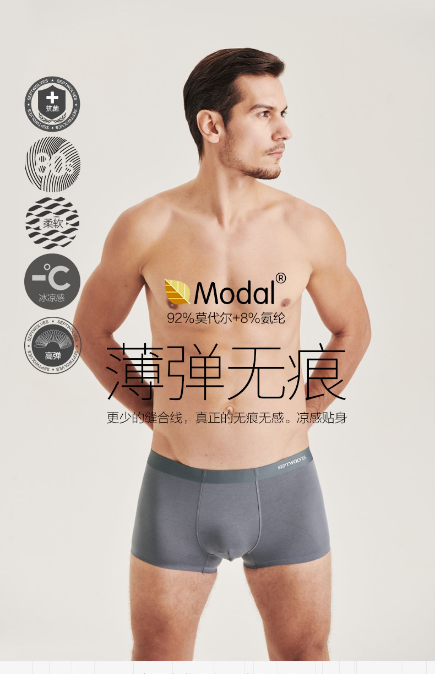 商品名称:12七匹狼男士内裤男冰丝无痕四角裤夏季薄款透气平角裤抗菌短裤头潮