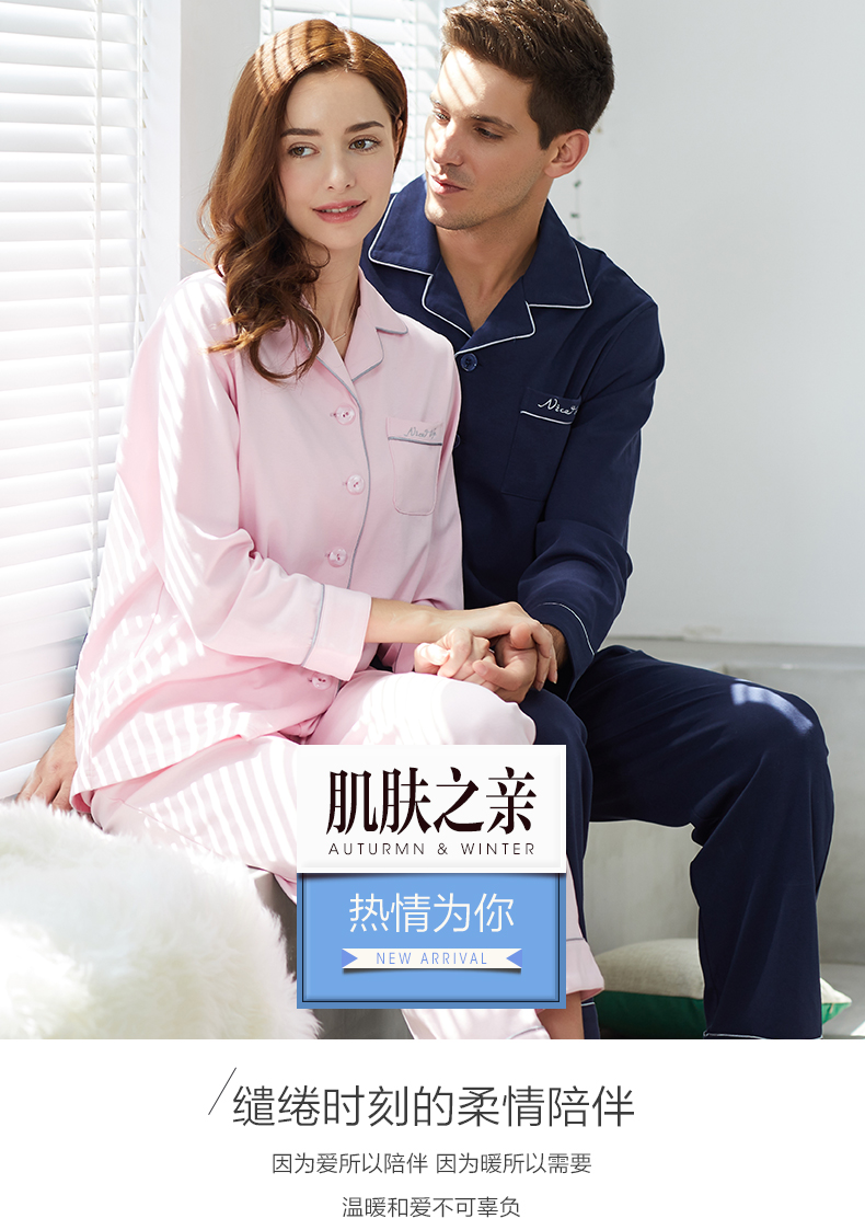 商品名称:16三枪睡衣男女春秋棉质开襟居家服翻领长袖长裤宽松家居服情侣套装