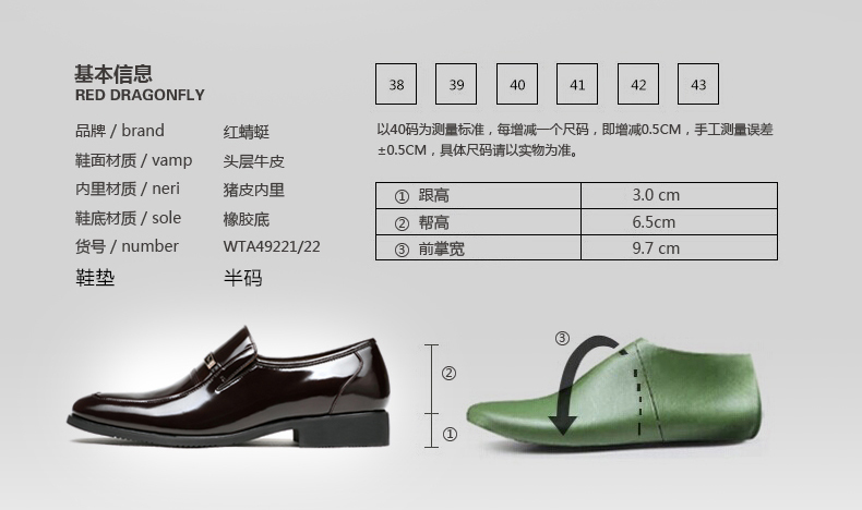 商品名称:33红蜻蜓男鞋官方旗舰店秋季真皮男士商务正装皮鞋漆皮中年人