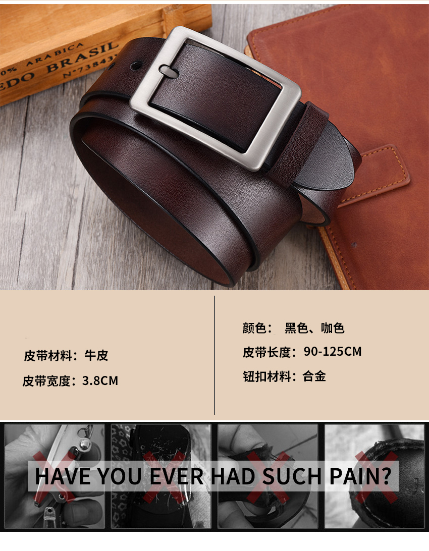 商品名称:壹号保罗EA87男士皮带女士真皮针扣牛皮带青年时尚百搭简约中年休闲宽腰带韩版